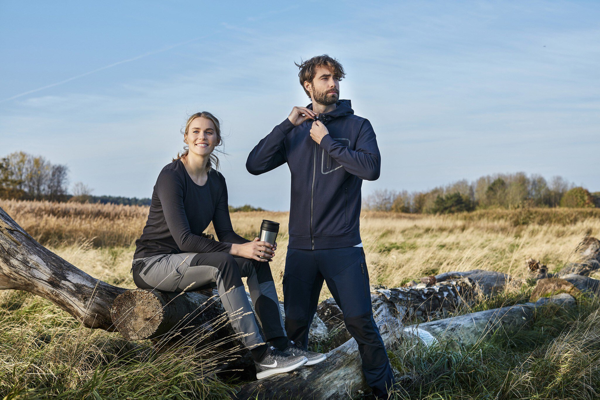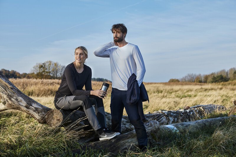 Praktische 5-Pocket-Hybridhose aus Stretchmaterial, die ausgezeichnete Bewegungsfreiheit und Komfort bietet. Bein- und Gesäßtaschen haben Reißverschlüsse mit reflektierenden Zippern. Knöpfe am Hosensaum zur Einstellung der Fußweite.