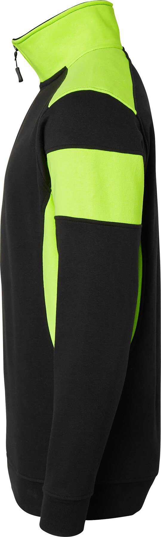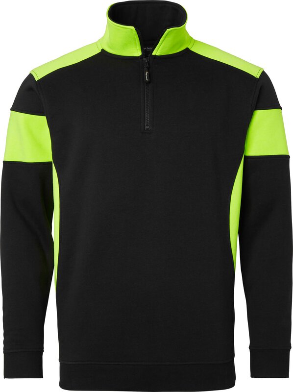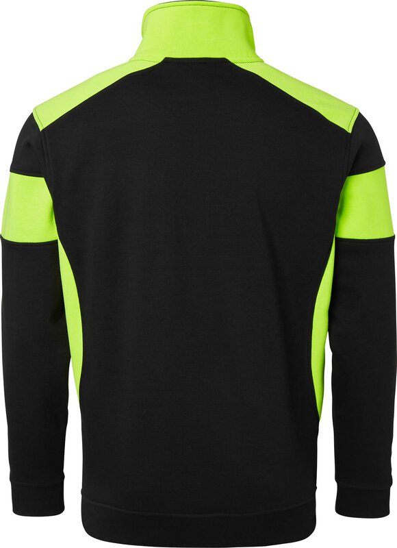Sweatshirt mit verbesserter Sichtbarkeit. Kragen mit kurzem Reißverschluss. Ärmel und Saum mit Bündchen.