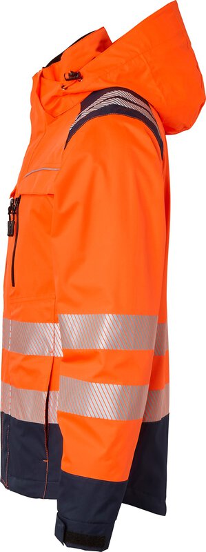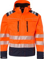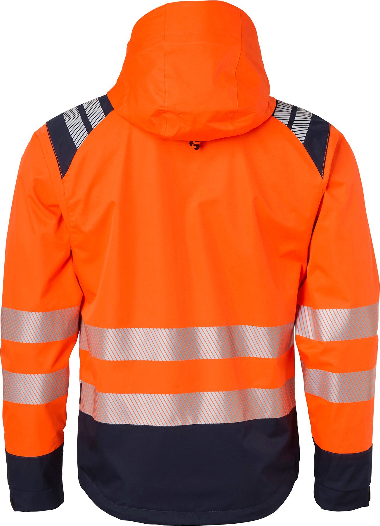 Wind- und wasserdichte Shell-Jacke. Gute Belüftung und versiegelte Nähte. Für außergewöhnlichen Komfort konzipiert. Oberbekleidung aus Stretch-Material. Durchgehender Reißverschluss bis zum Kragen. Zwei Brusttaschen mit Überschlag. In der rechten Tasche befindet sich ein Fach für einen Personalausweis. Zwei Brusttaschen mit wasserdichten Reißverschlüssen. Große Kartentasche auf der Innenseite der Patte. Zwei Vordertaschen. Zwei Innentaschen mit Reißverschlüssen. Armabschlüsse mit Daumenlöchern. Verstellbare Bündchen mit Klettverschluss. Kordelzug am Saum. Abnehmbare und verstellbare Kapuze. EN 343 Klasse 3. EN ISO 20471.