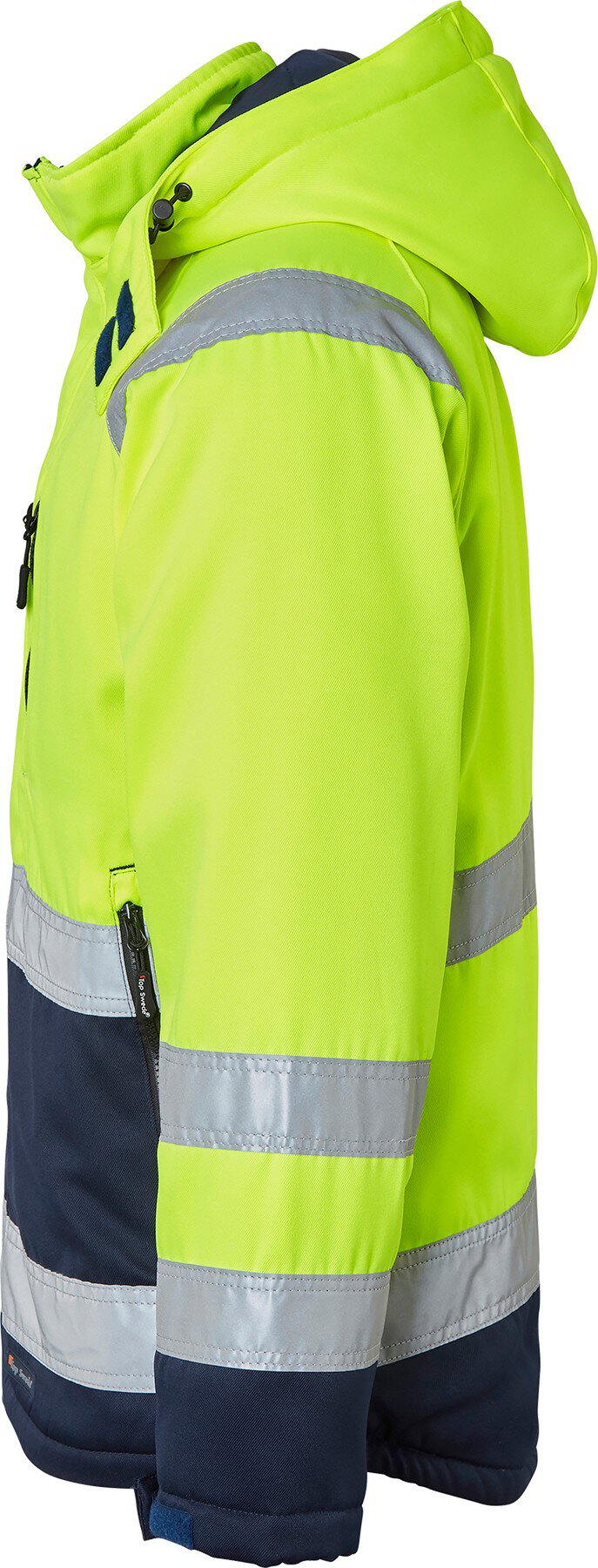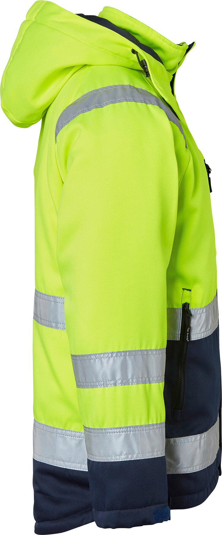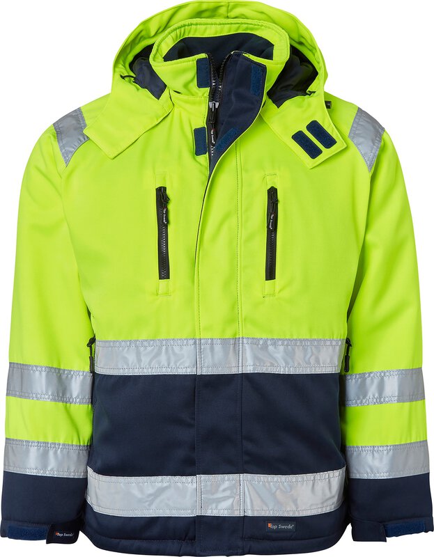 Entwickelt für herausragenden Komfort und Funktionalität. Steppgefüttert. Flauschiger Kragen. Kragen mit Reißverschluss. Verstellbare, abnehmbare Kapuze. Zwei Brusttaschen mit Reißverschlüssen. Eine davon hat ein Handy- und ein abnehmbares Ausweisfach. Kartentasche mit Reißverschluss unter der Patte. Zwei Vordertaschen mit geschlossenen Reißverschlüssen, gefüttert mit warmem Fleece. Zwei Innentaschen mit Reißverschlüssen. Gerippte Bündchen. Verstellbare Manschette mit Klettverschluss. Kordelzug am Saum. EN ISO 20471 Klasse 3.