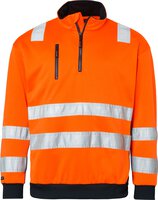 High-Vis-Sweatshirt mit Kragen. Eine Brusttasche mit Reißverschluss. Reißverschluss am Hals. Arm- und Saumbündchen. EN ISO 20471 Klasse 3.