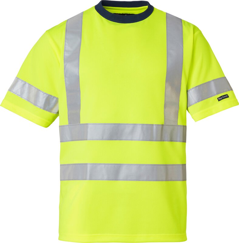 Aktivitäts-T-Shirt mit hoher Sichtbarkeit. Activewear, die den Schweiß vom Körper wegtransportiert und schnell trocknet. EN ISO 20471.