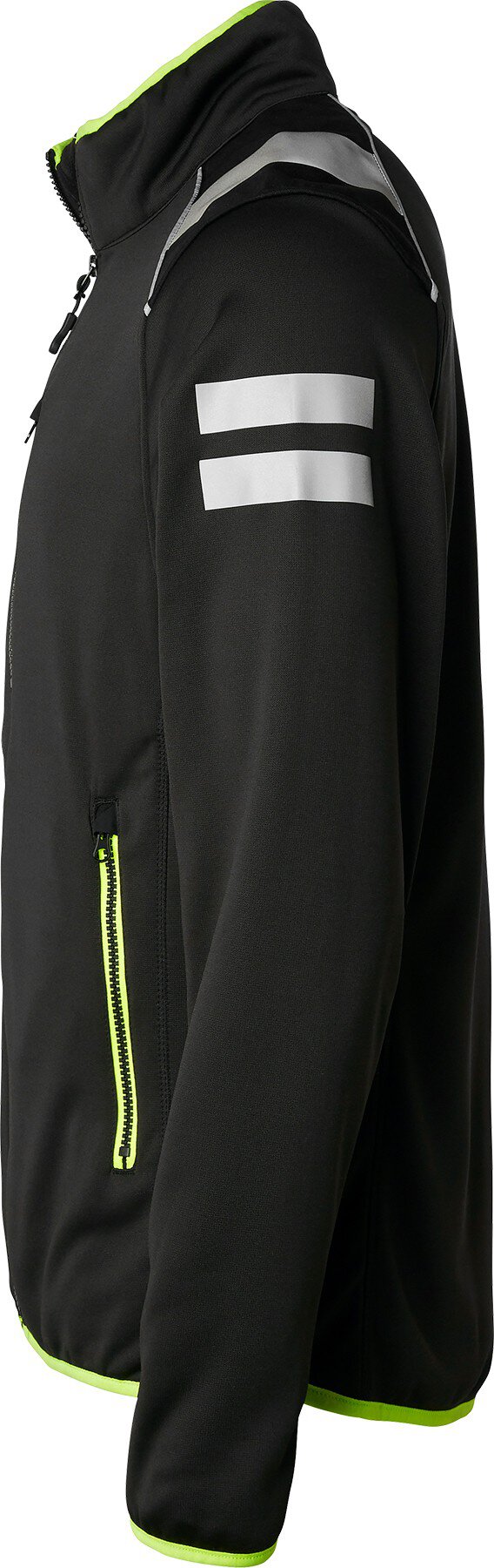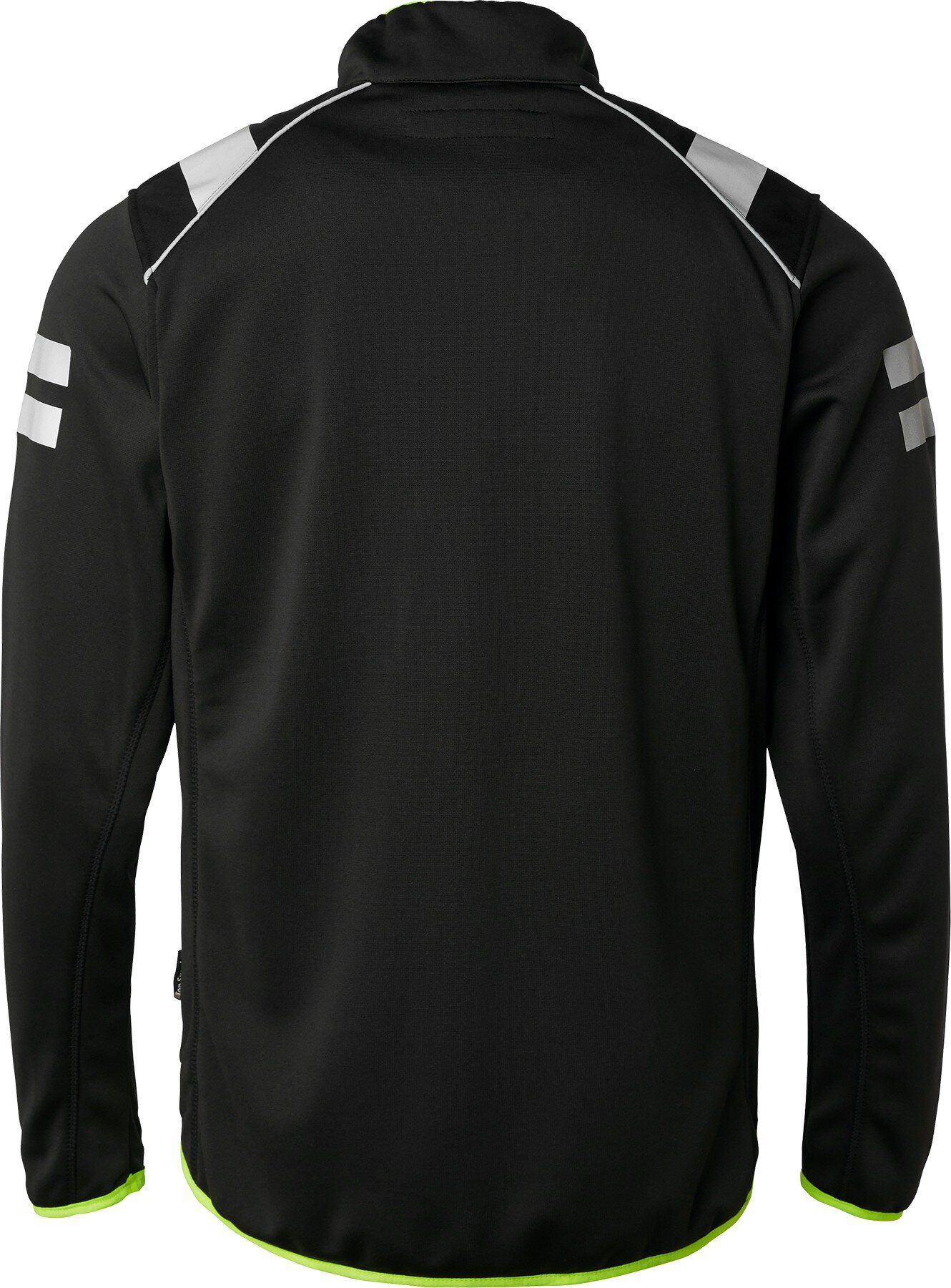 Jacke mit durchgehendem Reißverschlußkragen. Eine Brusttasche mit Reißverschluss und ein Handyfach. Reflektoren für bessere Sichtbarkeit. Zwei Vordertaschen mit Reißverschluss. Innere Handytasche mit Reißverschluss und Kopfhörerausgang. Elastische Bündchen. Elastischer Saum.