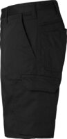 Kurze Hose mit zwei aufgenähten Vordertaschen. Zwei Gesäßtaschen. Beintasche mit Lasche. Die Beintasche hat ein Handyfach.