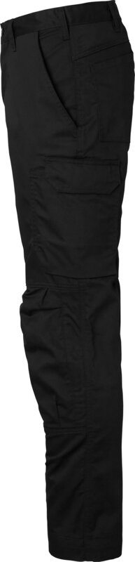 Lange Hose mit zwei abgesteppten Vordertaschen. Zwei Gesäßtaschen. Beintasche mit Überschlag. Die Beintasche hat ein Handyfach. Knietaschen, in denen die Kniepolster auf zwei verschiedenen Ebenen angebracht werden können.