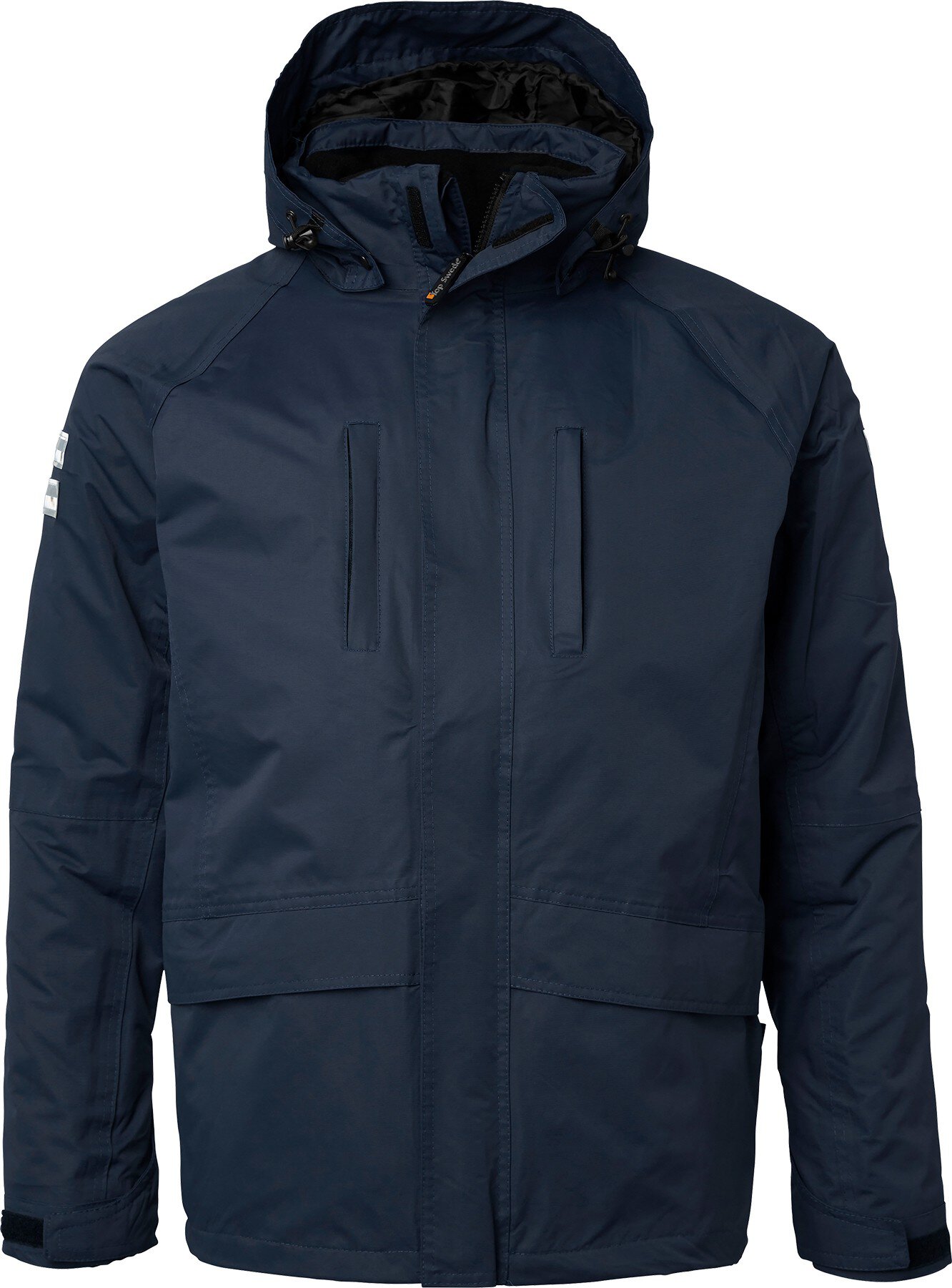 3-in-1-Jacke. Wind- und wasserdicht mit versiegelten Nähten. Herausnehmbare Innenjacke aus Mikrofleece. Kann separat oder zusammen verwendet werden. Abnehmbare Kapuze. Reflektierende Einfassung für bessere Sichtbarkeit. Verstellbare Bündchen. Zwei Brusttaschen mit Reißverschluss, zwei Seitentaschen mit Klappen und ein Reißverschluss am unteren Teil der Jacke. Innentasche. Kordelzug in der Taille und am Saum. EN 343. Wasserdichtigkeit 10.000 mm, Atmungsaktivität 5.000 g/m².