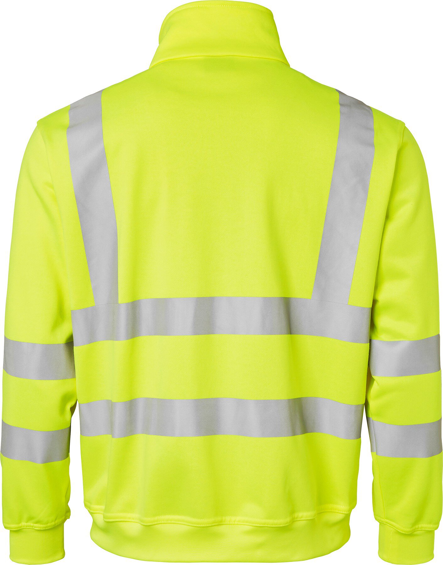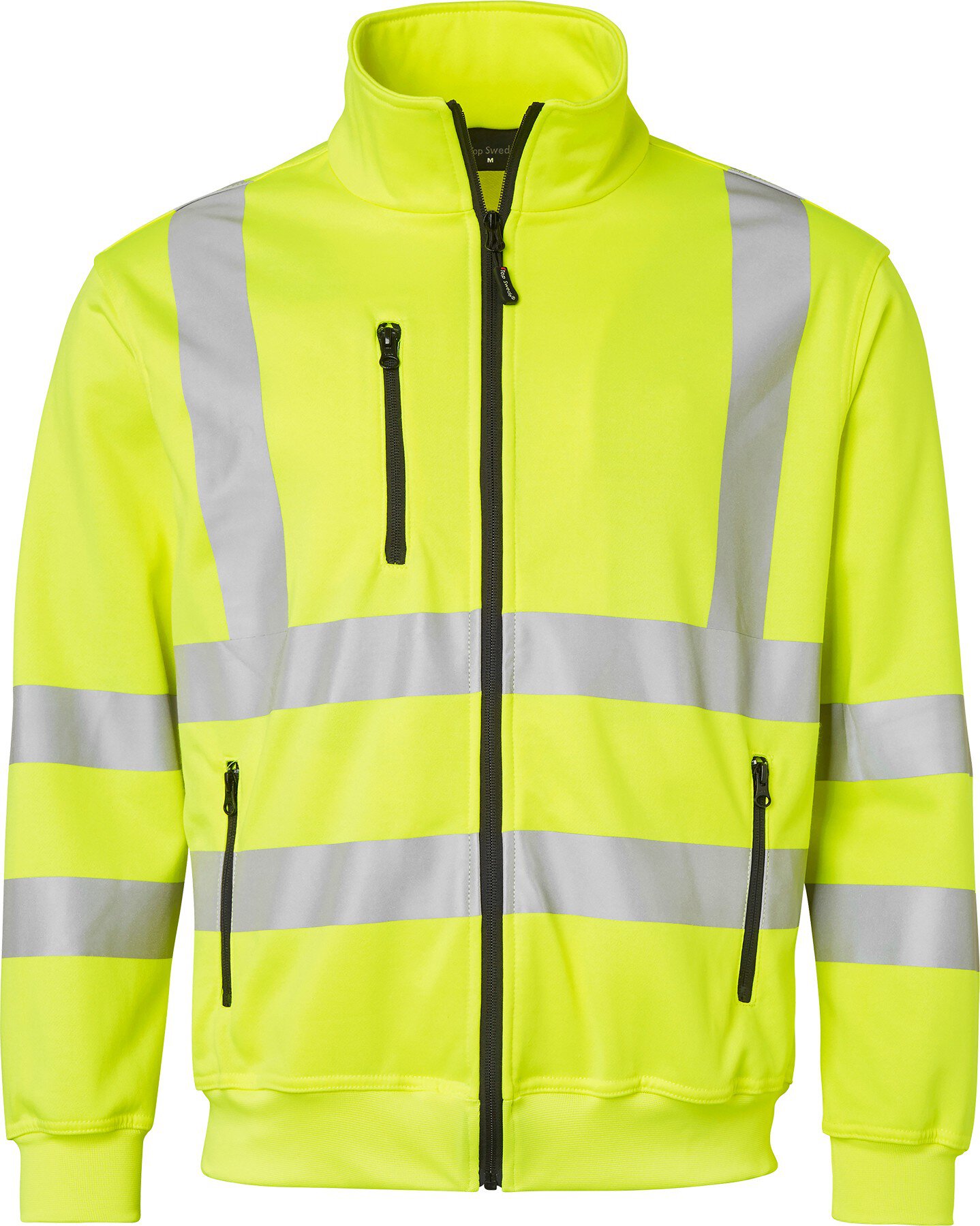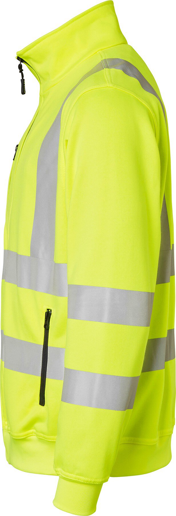 Sweatshirt mit Kragen und durchgehendem Reißverschluss. Zwei Vordertaschen mit Reißverschluss. Eine Brusttasche mit Reißverschluss. Stretchmaterial mit Reflektoren. Arm- und Saumbündchen. EN ISO 20471 Klasse 2 XS-S, Klasse 3 M-3XL.