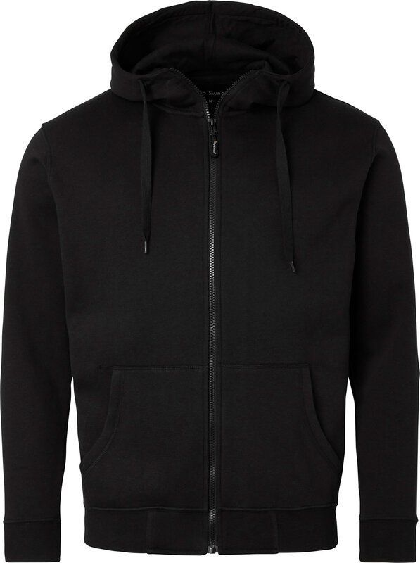 Herren-Kapuzenpulli mit durchgehendem Reißverschluss. Kapuze. Seitliche Taschen. Ärmel und Saum mit Bündchen.