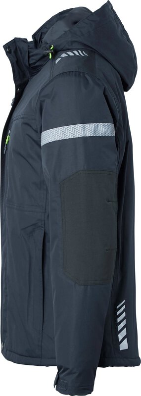 Wind- und wasserdichte Jacke mit versiegelten Nähten und guter Belüftung. Gestepptes Futter und Rückenmaterial, das zusätzliche Wärme und Belüftung bietet. Eine Brusttasche mit wasserdichtem Reißverschluss. Eine Innentasche/Telefontasche. Geräumige Napoleon-Zubehörtasche unter der Lasche. Abnehmbare gefütterte Kapuze. Reflektierende Besätze für bessere Sichtbarkeit. Verstellbare Manschetten. Verstellbarer Saum. Ärmelbund mit Daumenloch. Wasserdichtigkeit 10.000 mm, Atmungsaktivität 5.000 g/m². EN 343 Klasse 3.