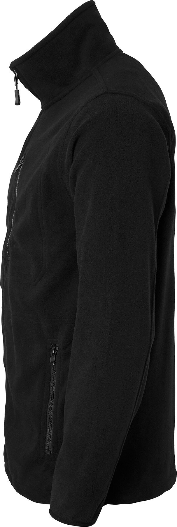 Fleecejacke mit einer Brusttasche und zwei Vordertaschen mit Reißverschlüssen. Kordelzug am Saum.