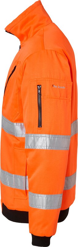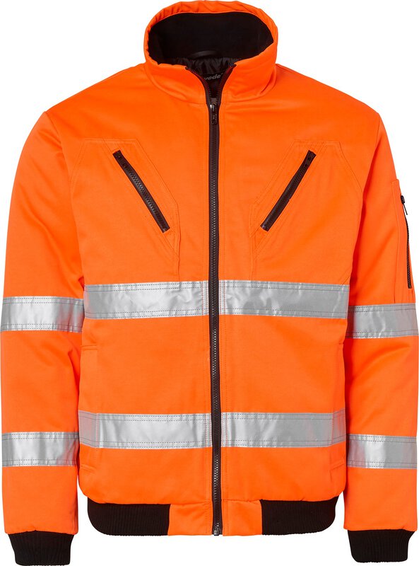 High-Vis-Winterjacke mit Steppfutter. Zwei Brusttaschen mit Reißverschlüssen und zwei Vordertaschen. Eine Innentasche und eine Handytasche. Gerippte Bündchen und Saum. EN ISO 20471 Klasse 3.