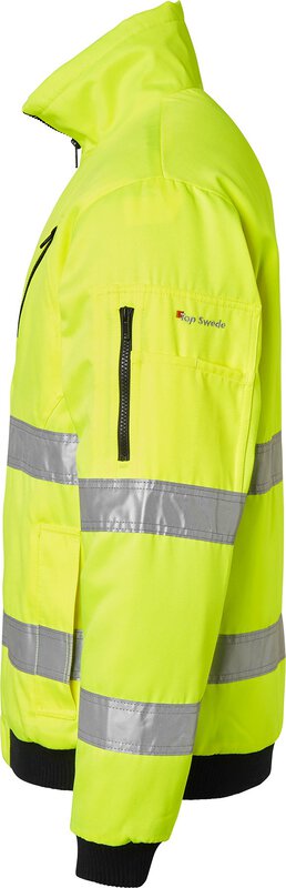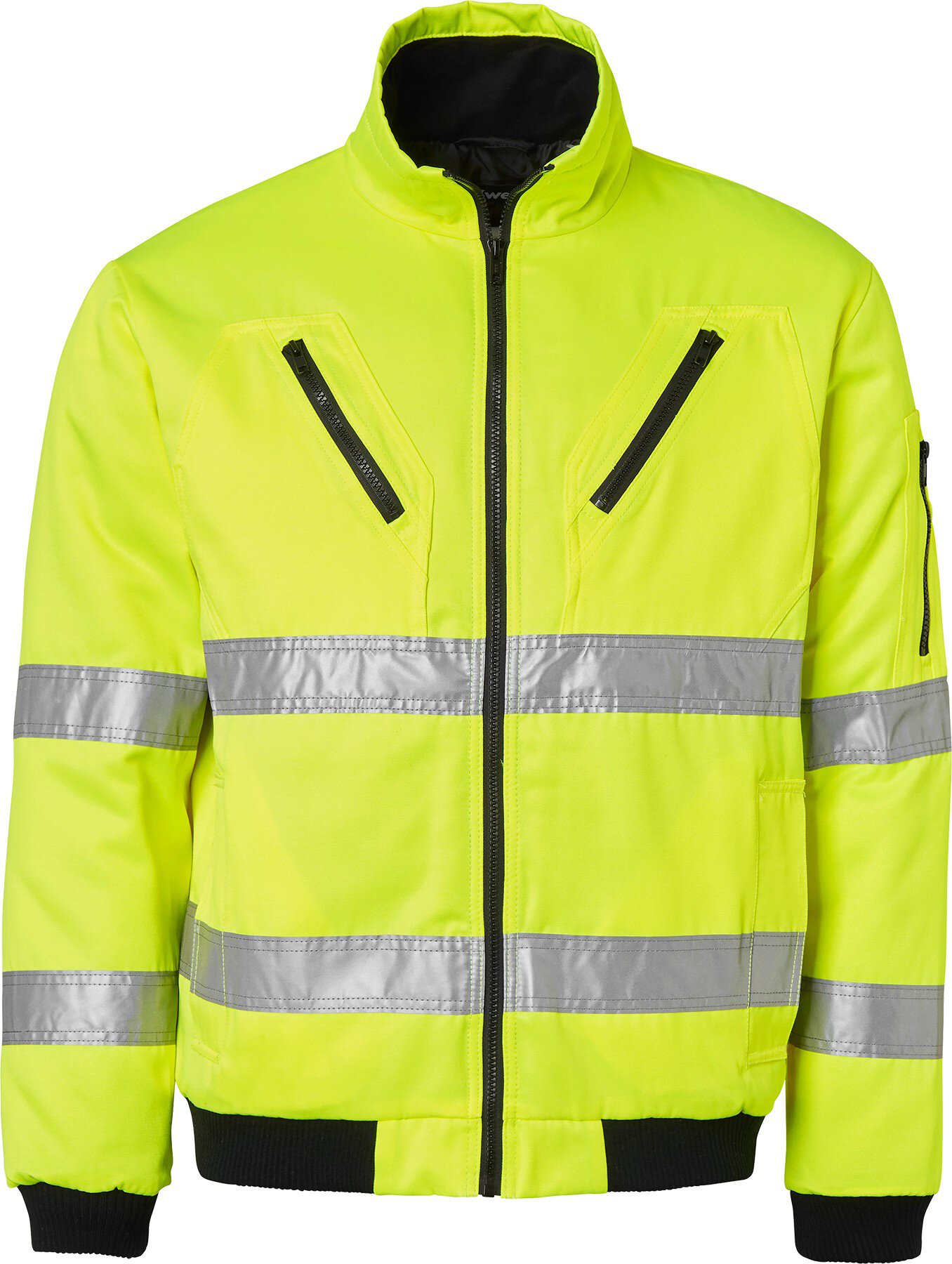 High-Vis-Winterjacke mit Steppfutter. Zwei Brusttaschen mit Reißverschlüssen und zwei Vordertaschen. Eine Innentasche und eine Handytasche. Gerippte Bündchen und Saum. EN ISO 20471 Klasse 3.