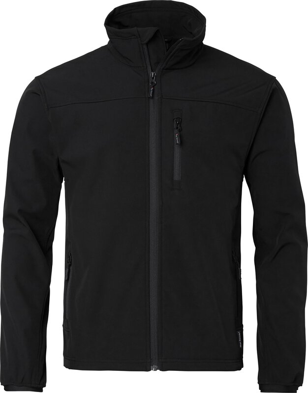 Soft-Shell-Jacke mit Reißverschluss. Eine Brusttasche und zwei Fronttaschen mit Reißverschlüssen. Das Softshell-Material besteht aus 3 laminierten Schichten. Flexible Oberbekleidung mit einer stark wasserabweisenden Membran. Innenmaterial aus warmem Fleece.