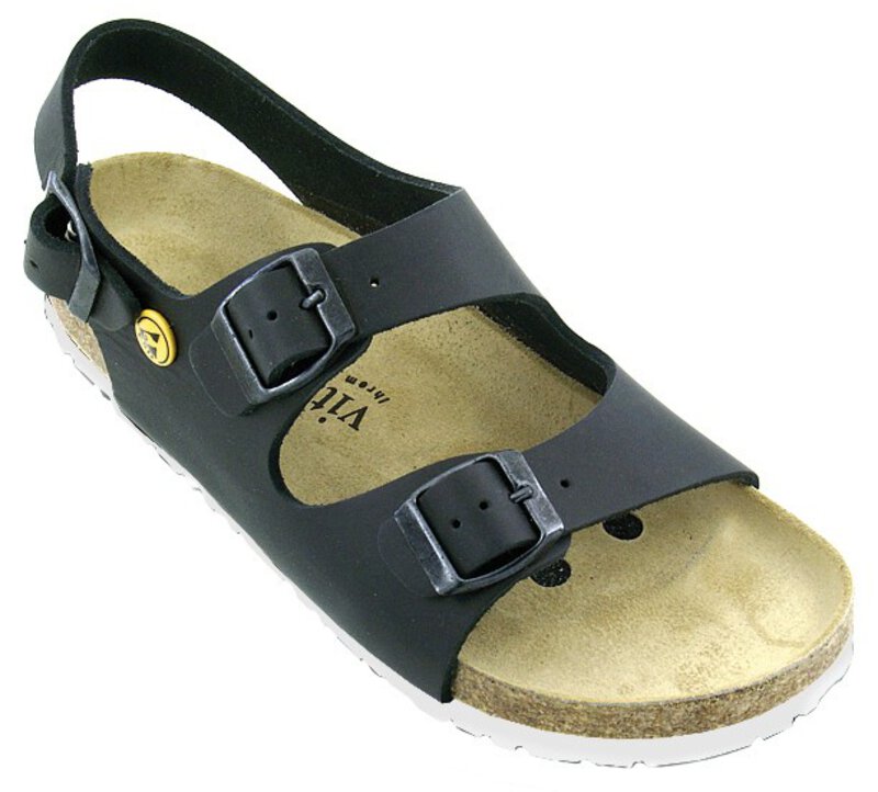ESD Sandalen Vollrindleder/Fersenriemen, schwarz-weiß, 43