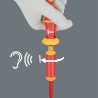 Drehmoment-VDE-Handhalter für sicheres Arbeiten bis 1000 Volt. Mit einstellbarem Drehmoment von 1,7-3,5 Nm. Deutlich hör- und spürbares Überrasten beim Erreichen des eingestellten Drehmoments. Unbegrenztes manuelles Lösemoment. Für Kraftform Kompakt VDE-Klingen: Das Griff-/Wechselklingen-System lässt blitzschnellen Austausch der benötigten Klinge und damit vielfältige Anwendungen zu.