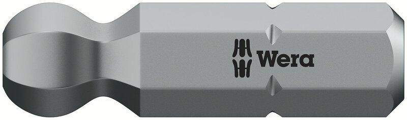 Zähharte Wera Bits für Innensechskantschrauben, für den universellen Einsatz. Durch die kugelförmigen Abtriebsprofile ist ein Auslenken oder Schwenken der Werkzeugachse zur Schraubenachse möglich, so dass dadurch "um die Ecke" geschraubt werden kann. 1/4"-Sechskant, passend für Halter nach DIN ISO 1173-D 6,3.