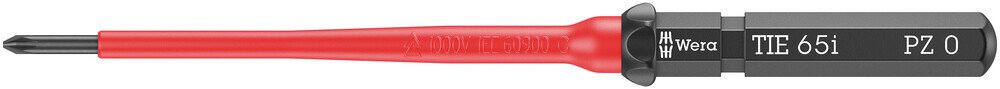 VDE Klinge für Kraftform Kompakt Griff-/Wechselklingensystem. Blitzschneller Austausch der Klinge ohne Sonderwerkzeug. Stückgeprüfte Werkzeuge gem. IEC 60900. Stückprüfung bei 10.000 V für sicheres Arbeiten bei der zugelassenen Spannung von 1.000 V. Die Wera Black Point-Spitze bietet Passgenauigkeit und optimierten Korrosionsschutz. Mit Werkzeugfinder Take it easy: Farbkennzeichnung nach Profilen sowie aufgelaserter Größenangabe. Der Sechskantabrollschutz verhindert das unbeabsichtigte Wegrollen der Klinge.