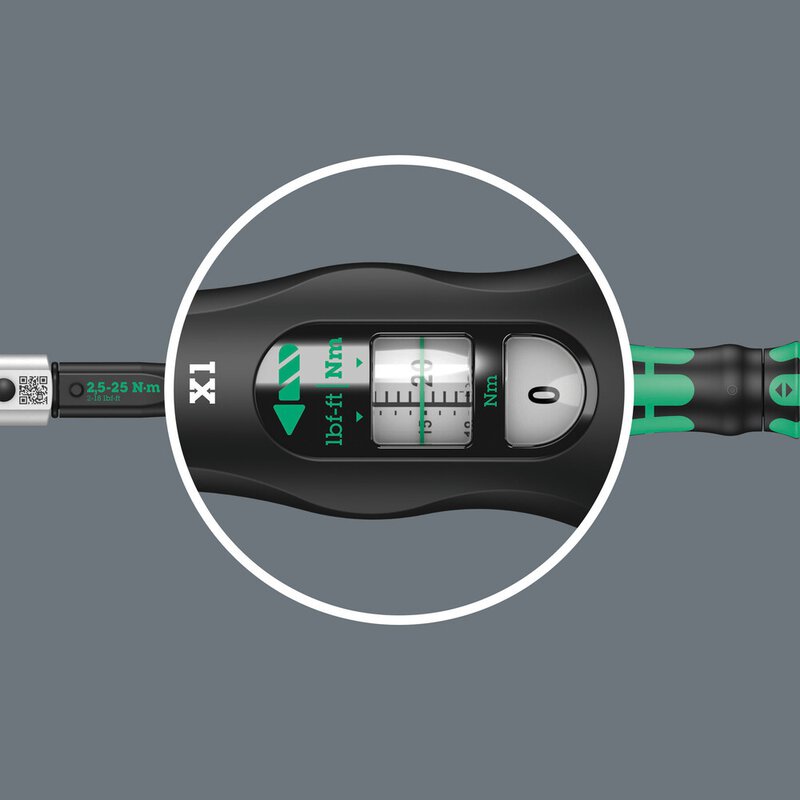 Klick-Drehmomentschlüssel im unverkennbaren Wera Design. Sehr robuste Ausführung bei hoher Genauigkeit gemäß DIN EN ISO 6789-1:2017-07. Einfache Einstellung und Sicherung des Vorgabewertes. Das hör- und fühlbare Einrasten bei Erreichen der Skalenwerte erleichtert zusätzlich die sichere Einstellung des gewünschten Drehmomentwertes. Die robuste Auslösemechanik garantiert ein deutlich hör- und fühlbares Auslösesignal bei Erreichen des eingestellten Drehmomentes. Für den Rechts- und Linksanzug und mit Einsteckvierkant 9x12 mm zur Aufnahme von entsprechenden Einsteckwerkzeugen.