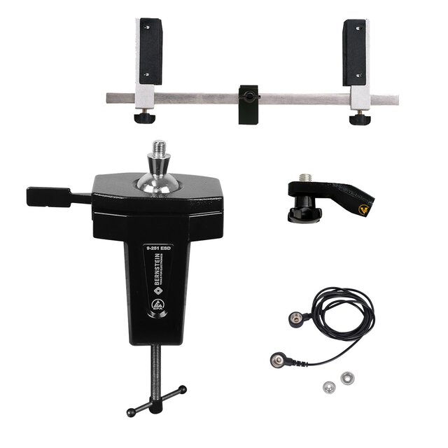 ESD Kugelgelenk-Schraubstock (Anklemmen) ableitfähig + Stecker + Erdungsleitung