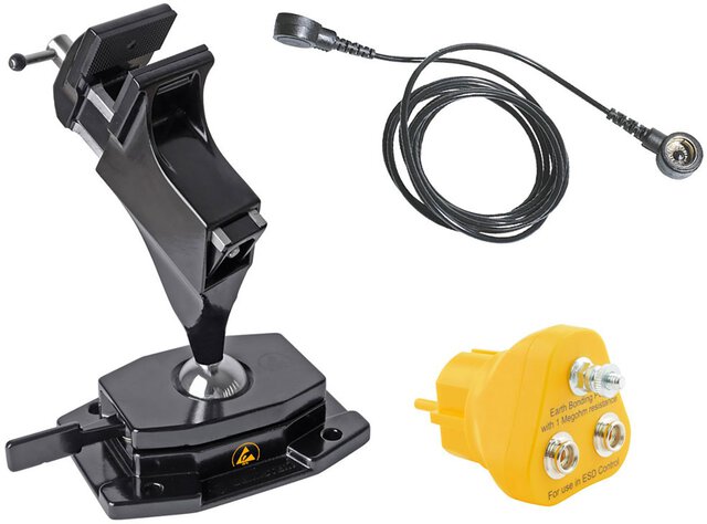 ESD Kugelgelenk-Schraubstock (Aufschrauben) ableitfähig + Stecker + Erdungsleitung
