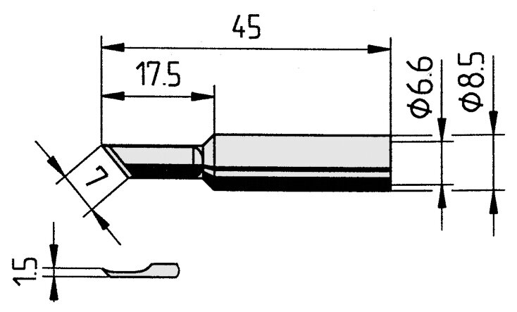 • Dauerlötspitze, gerade, PLCC-Messer, 1,5 mm breit, mit ERSADUR- Beschichtung.
