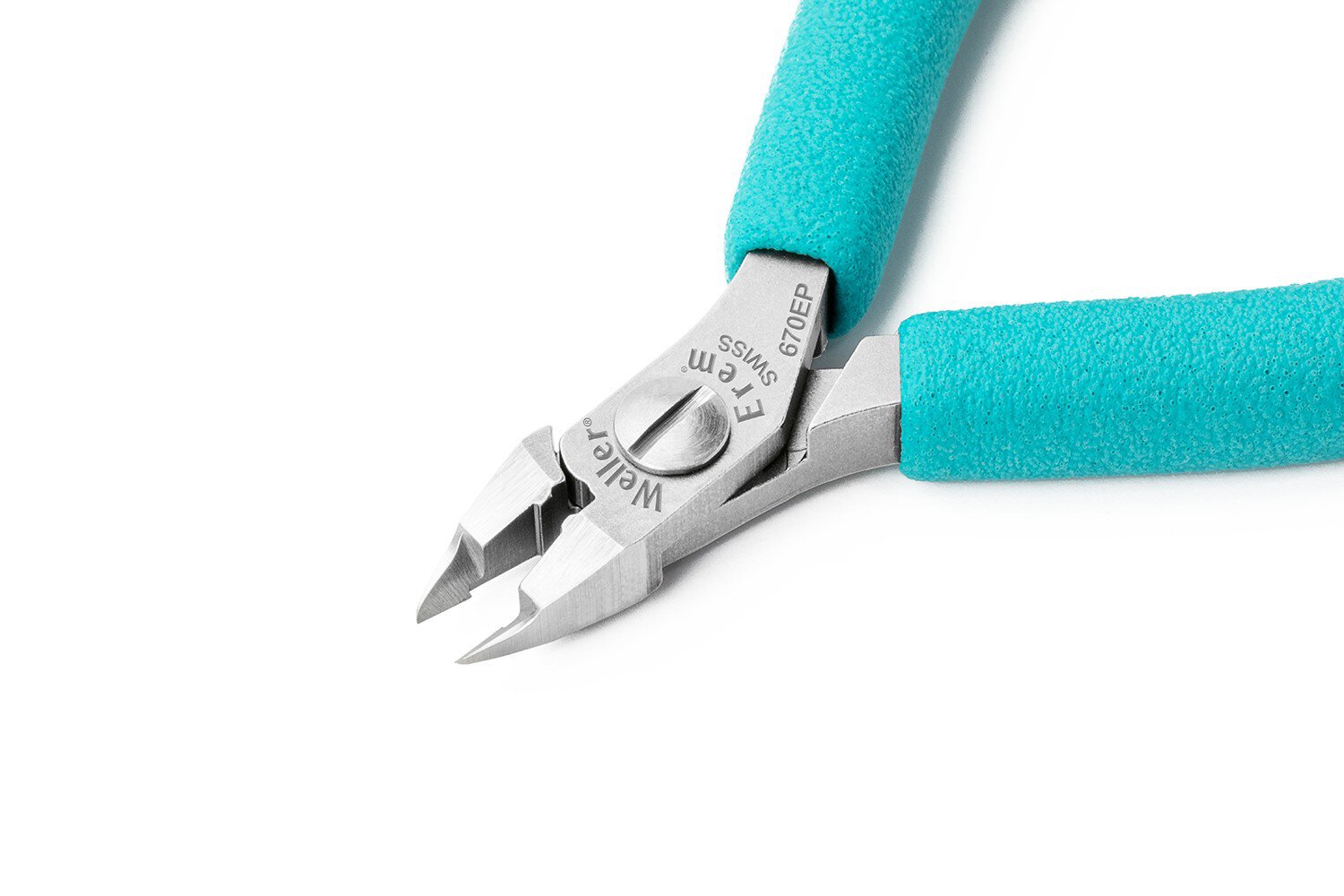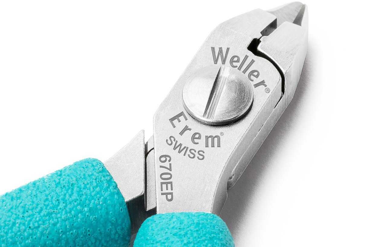 Der perfekte Schnitt - kraftvoll, scharf und langlebig. Immer. Die Weller Erem Serie 600 Micro ist ein Sortiment kleinster Präzisionsschneider mit einer Vielzahl von Kopfformen für den Zugang in schwer zugänglichen Bereichen. Diese Mikroschneider eignen sich für SMD und Leitungen (670EP, 670EPF). Die Schneider werden aus hochwertigem Werkzeugstahl mit auf 63-65 HRc gehärteten Schneidkanten hergestellt. Die Präzisionsschneider haben eine nicht reflektierende Oberfläche, sind ESD-sicher und können nachgeschärft werden.