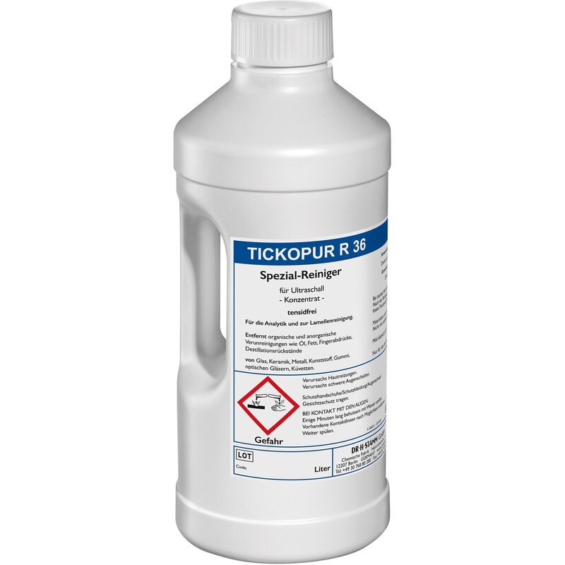 TICKOPUR R 36 ist speziell für die Reinigung in SONOREX-Ultraschallgeräten, aber auch zur Tauch- ,Wisch und