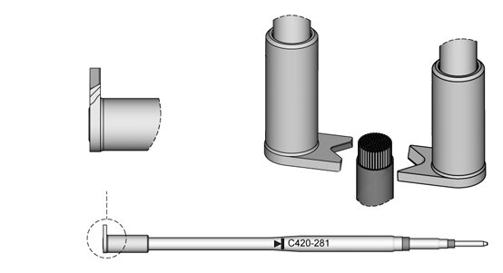 Die Spitzenserie C420 eignen sich zum Löten und Entlöten von SMD-Bauteilen. Die Lötspitzen sind kompatibel mit der Thermopinzette HT420 und werden einzeln verkauft.