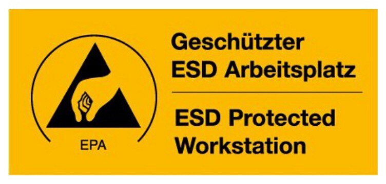 • Aufdruck: Geschützter ESD Arbeitsplatz / ESD protected Workstation