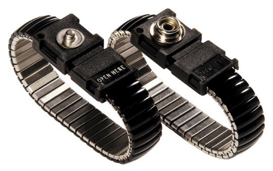 Die ESD Armbänder von Warmbier lassen sich mit Hilfe der aufklappbaren Schnalle optimal an jedes Handgelenk anpassen und gewährleisten somit eine sichere Erdung der Mitarbeiter in einer ESD-Schutzzone (EPA).