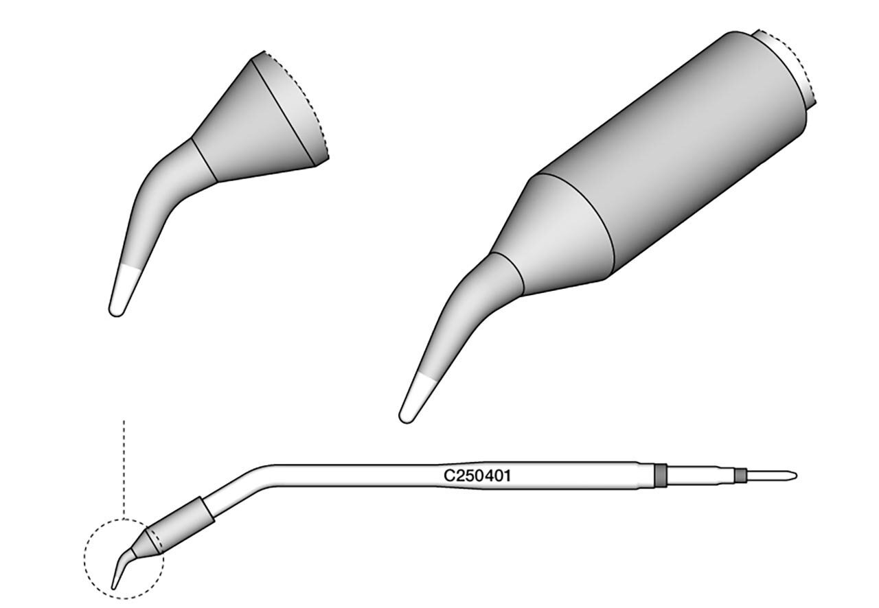 Die Spitzenserie C250 ist geeignet für AL250 und AP250 Lötkolben. Mit Hilfe der am Handstück integrierten Verdrehsicherung können die Lötspitzen ausgerichtet werden.