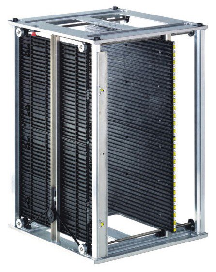 Leiterplattenmagazine Serie 700: Variable Breiteneinstellung durch Zahnriemen von Hand