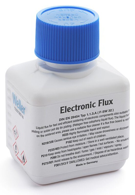 • Flüssiges Flussmittel (100 ml), geeignet für einfache Lötanwendungen mit hohen Temperaturen und langen Lötzeiten (z.B. Draht- und Tauchverzinnung)