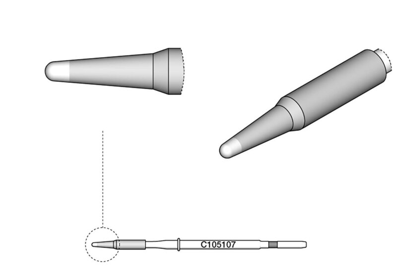 Die Lötspitzen der Serie C105 sind die kleinsten Spitzen der JBC-Serien und eignen sich hervorragend zum Löten und Reparieren sehr kleiner Bauteile. Diese sind kompatibel mit den NT105 und NP105 Nanohandstücken