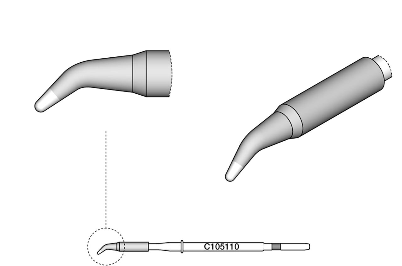 Die Lötspitzen der Serie C105 sind die kleinsten Spitzen der JBC-Serien und eignen sich hervorragend zum Löten und Reparieren sehr kleiner Bauteile. Diese sind kompatibel mit den NT105 und NP105 Nanohandstücken