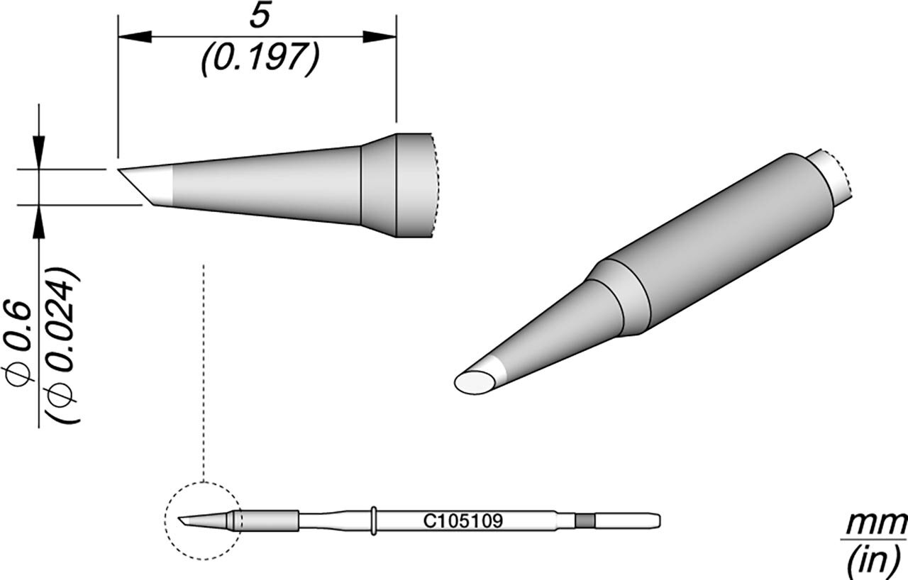 Die Lötspitzen der Serie C105 sind die kleinsten Spitzen der JBC-Serien und eignen sich hervorragend zum Löten und Reparieren sehr kleiner Bauteile. Diese sind kompatibel mit den NT105 und NP105 Nanohandstücken