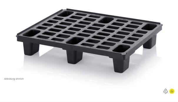 ESD-Leichtpaletten mit Sicherungsrand, schwarz, 800x600x130 mm