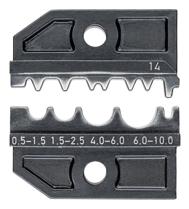 Anwendung: für unisolierte Quetsch-, Rohr- und Presskabelschuhe nach DIN 46234 und DIN 46235 sowie unisolierte Quetsch-, Stoß- und Pressverbinder nach DIN 46341 und DIN 46267 0,5 - 10 mm². - Nennmaß: 0,5 – 10 mm² - Anwendung: für unisolierte Quetsch-, Rohr- und Presskabelschuhe nach DIN 46234 und DIN 46235 sowie unisolierte Quetsch-, Stoß- und Pressverbinder nach DIN 46341 und DIN 46267 - Kapazität Quadratmillimeter: 0,5 — 10mm² - Anzahl der Nester: 4 - AWG: 20 — 7