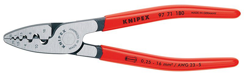 Crimpzange für Aderendhülsen, Griffe mit Kunststoff überzogen, 0,25 - 16,0 mm², 180 mm