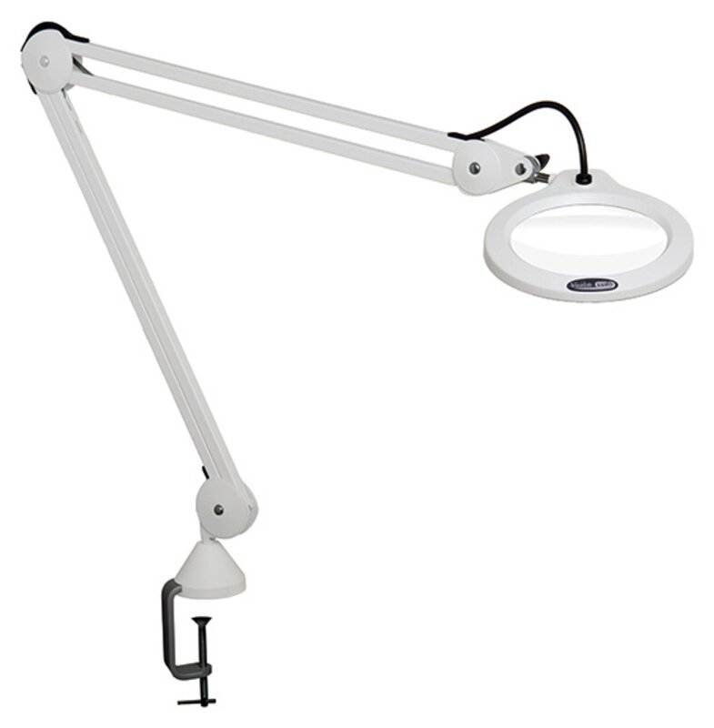 Die LFM LED G2 von Vision Luxo ist eine klassische Lupenleuchte in Leichtbauweise in einer Ganz-Metallkonstruktion mit LED-(Leuchtdiode) Lichtquellen und einem flexiblen Federarm. Passend für professionelle und industrielle Anwendungen, bei denen eine exakte Vergrößerung benötigt wird.