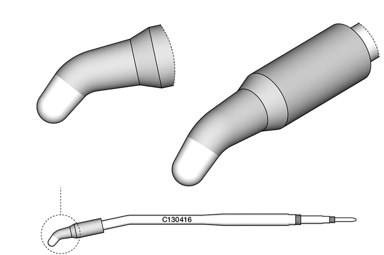 Die Löspitzenserie C130 sind für das Handstück AP130 geeignet und verfügen über gebogene Spitzen, die perfekt an die die Position des Zinndrahts angepasst sind. Die Spitzen können mit Hilfe der Verdrehsicherung am Handstück ausgerichtet werden.