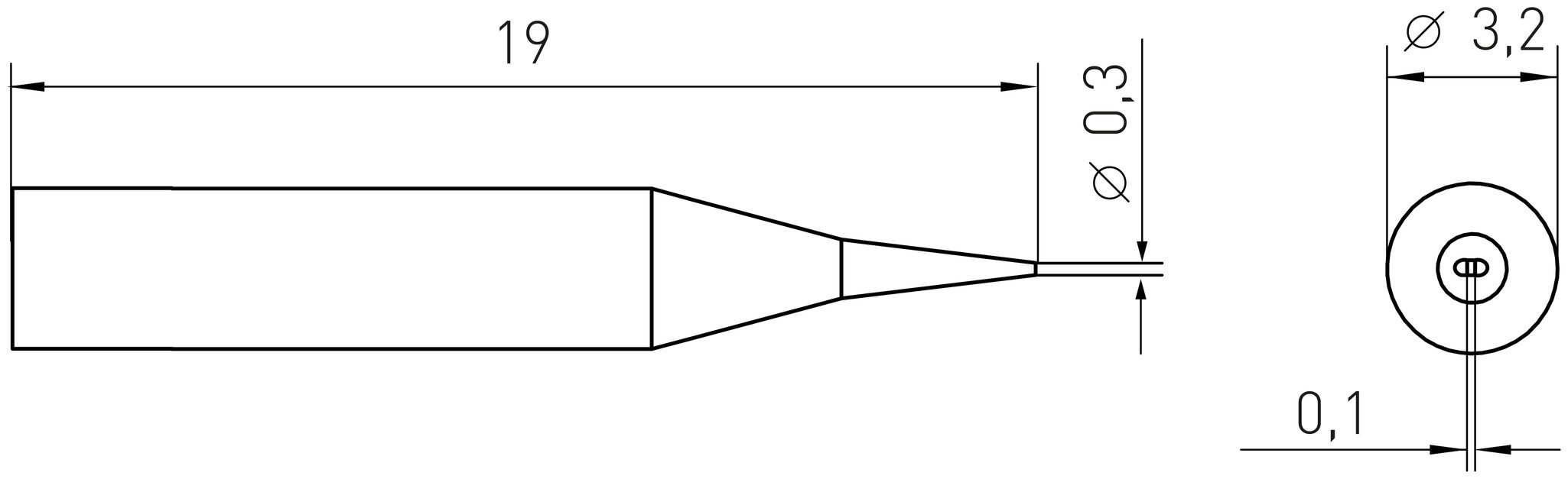Micro Lötspitze RTM 003 S NW MS, Meißelform Ø 0,3 x 0,1 mm, MIL-SPEC, nicht benetzbar
