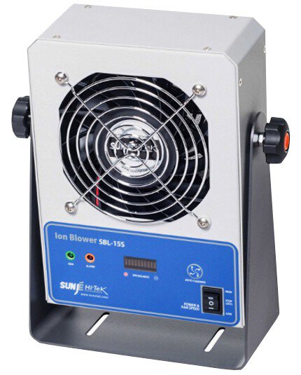 Mit einem Ionisierungsgeräte von SUNJE lassen sich elektrostatische Aufladungen an Arbeitsplätzen und im ESD-Servicebereich neutralisieren. Das integrierte Gebläse ist stufenlos einstellbar. Bei dem Ionisiergerät basiert die Ionisation auf Hochfrequenz-Wechselspannung (HF-AC).