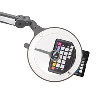 Die iQ Lupenleuchte verfügt über eine leichte Acryllinse mit einem großen Sichtfeld. Der Lupenkopf ist frei beweglich und lässt sich beliebig positionieren, sodass eine maximale horizontale und vertikale Bewegungsfreiheit gegeben ist. Der robuste Arm mit integrierten Federn bietet eine gute horizontale Reichweite und Positionsfestigkeit. Eine zusätzliche Schwenkarmlinse mit 12 Dioptrien (4,0X) ist ebenfalls enthalten. Ein seitlicher Schutz hilft, die Leuchte sauber zu halten. Die Lupe verfügt über einen abnehmbaren Linsenschutz.