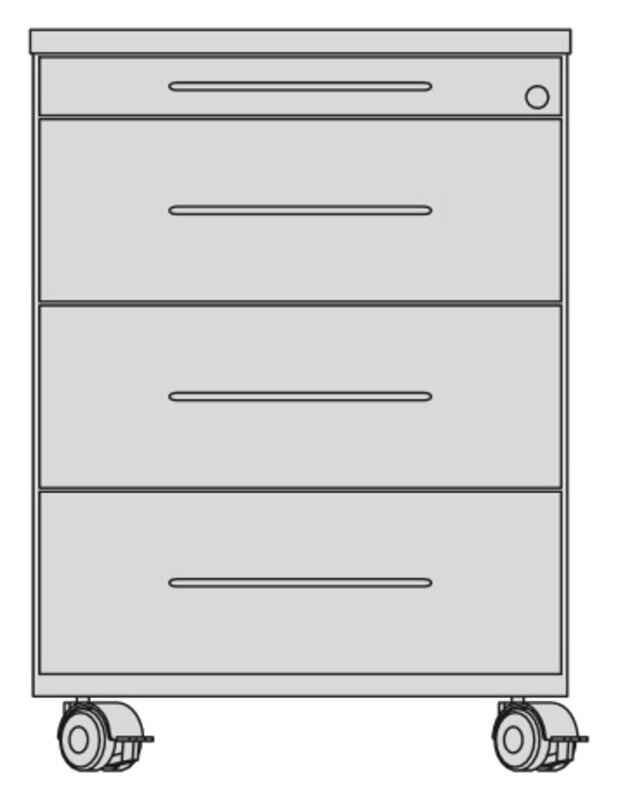 Der Rollcontainer von Karl besteht aus einem Holzkorpus mit 4 Schubladen, die mit einer Auszugssicherung versehen sind. Somit kann nur ein Schubfach gleichzeitig geöffnet werden.