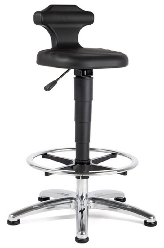 Die ESD Stehhilfe Flex ist die praktische Lösung für Arbeitsplätze in einer EPA, an denen sowohl gesessen als auch gestanden wird. Hierfür verfügt Flex über ein extra-großes Höhenspektrum, das stufenlos einstellbar ist. Seine körpergerechte Rückenstütze und seine rutschhemmende Wave-Sitzoberfläche sorgen für ein sicheres Sitzgefühl. Der Stuhl erfüllt die ESD-Norm 61340-5-1. Er ist massiv gebaut und extrem widerstandsfähig.