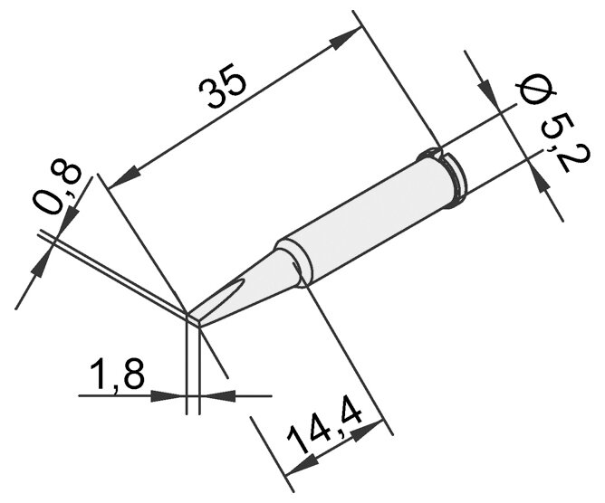 Lötspitze für i-Tool, gerade, meißelförmig, 1,8 mm, verlängert, 0102CDLF18L