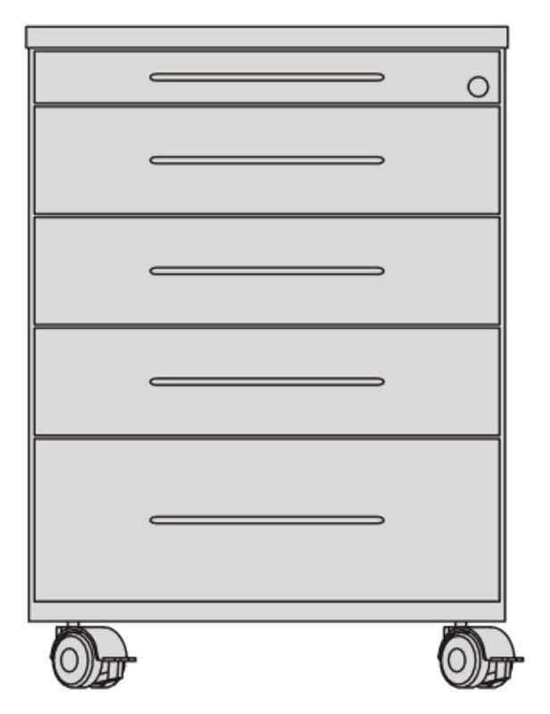 Der ESD Rollcontainer von Karl besteht aus einem Holzkorpus mit 5 Schubladen, die mit einer Auszugssicherung versehen sind. Somit kann nur ein Schubfach gleichzeitig geöffnet werden.