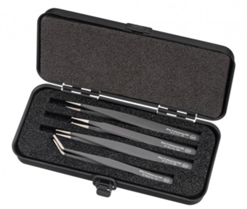 | Lieferumfang | 1x Universalpinzette Professional ESD (32318), Zangenlänge mm: 130 , Typ: AA 1x Präzisionspinzette Professional ESD (32325), Zangenlänge mm: 130 , Typ: PSF 1x SMD-Pinzette Professional ESD (32340), Zangenlänge mm: 120 , Typ: 13 1x SMD-Pinzette Professional ESD (32344), Zangenlänge mm: 117 , Typ: 59 |