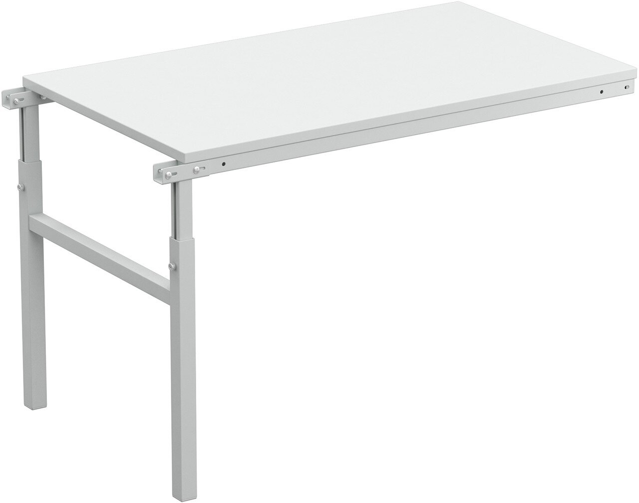 Jeder TP-Arbeitstisch ist auch als geradlinier Anbautisch erhältlich. Der Anbau erfolgt seitlich an der kurzen Seite des Grundtisches.